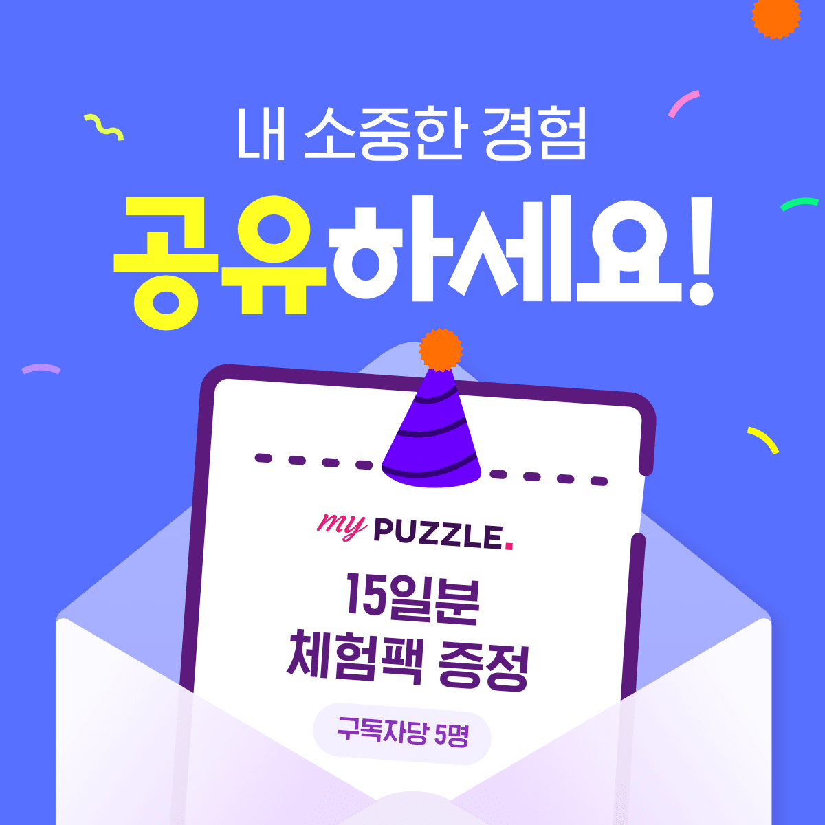 구독자 지인 5명에게 마이퍼즐 체험팩을 무료로 보내드려요!