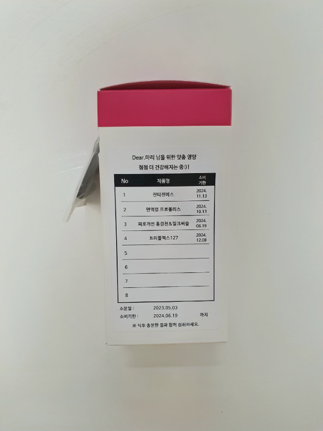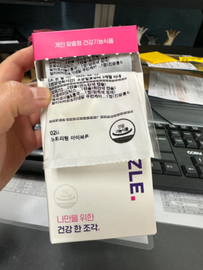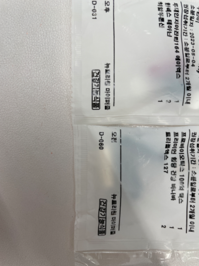 두번째 주문인데 첫번째 먹어보고 구성 조금 바꿔서 신청해봤습니다. 앱에 알림기능있어서 하루도 안 빼먹고 꼬박꼬박 챙겨먹을 수 있어서 좋네요.아쉬운 점은 소분포장된 봉투 넣는 방식 바꿔주셨으면 좋겠어요. 돌돌말려있어 오히려 꺼내기 힘듭니다. ㅠ