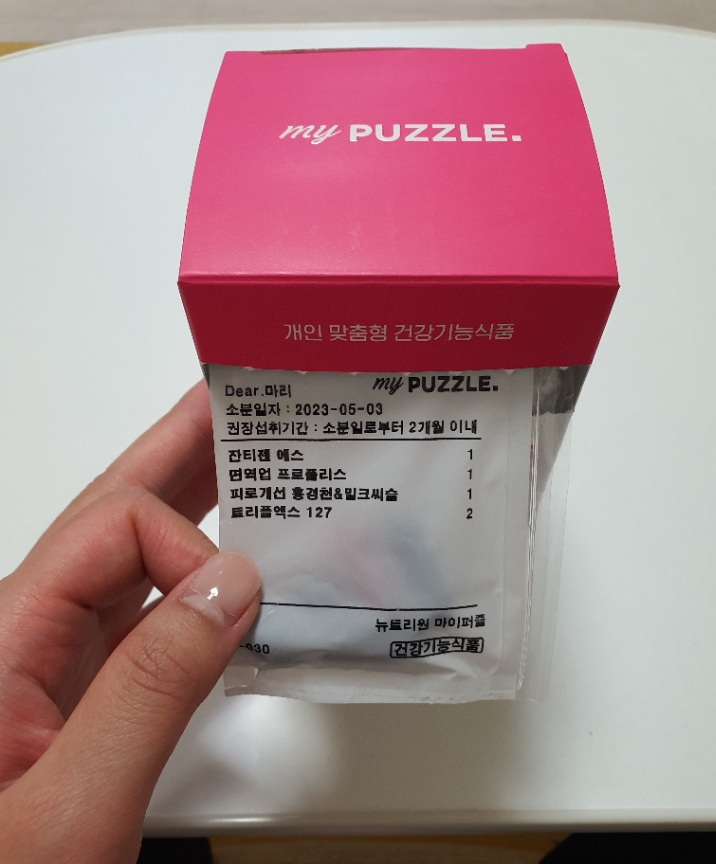 이번에 리뉴얼된 마이퍼즐 덕분에 약사님과 심층상담 끝에 엄선된 4가지 영양제 요즘 자주 아픈데 부디 도움되길🙏 #마이퍼즐 #영양제 #정기구독 #필수템 #건강지킴이💪