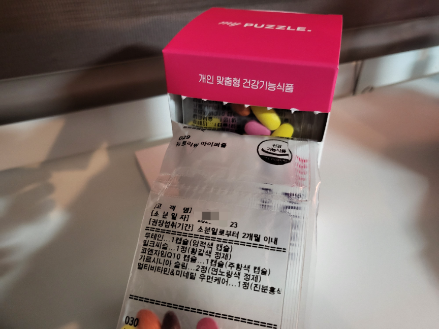 벌써 5개월째 꾸준히 섭취하고 있는 마이퍼즐!3개월 먹으니 변화가 좀 있는 것 같아서 재상담을 받았는데, 사무실에서 앉아만 있고, 외출도 거의 안 하다보니 뼈랑 근육 건강 챙기는게 좋을 것 같다고 하셔서 칼슘제도 추가했습니다~ 사무실에 두고 점심먹고 한 팩씩 꾸준히 챙겨먹게 되니까 너무 편한 것 같아요!
