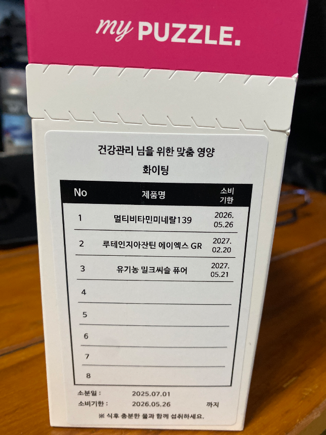 한달동안 마이퍼즐 을 먹으면서 건강하고 안전한 여름을 보내겠습니다